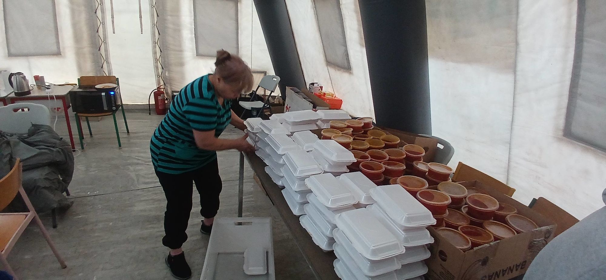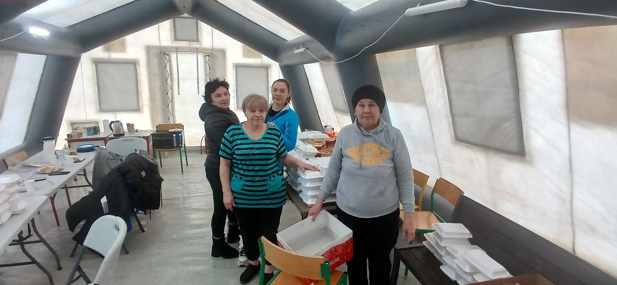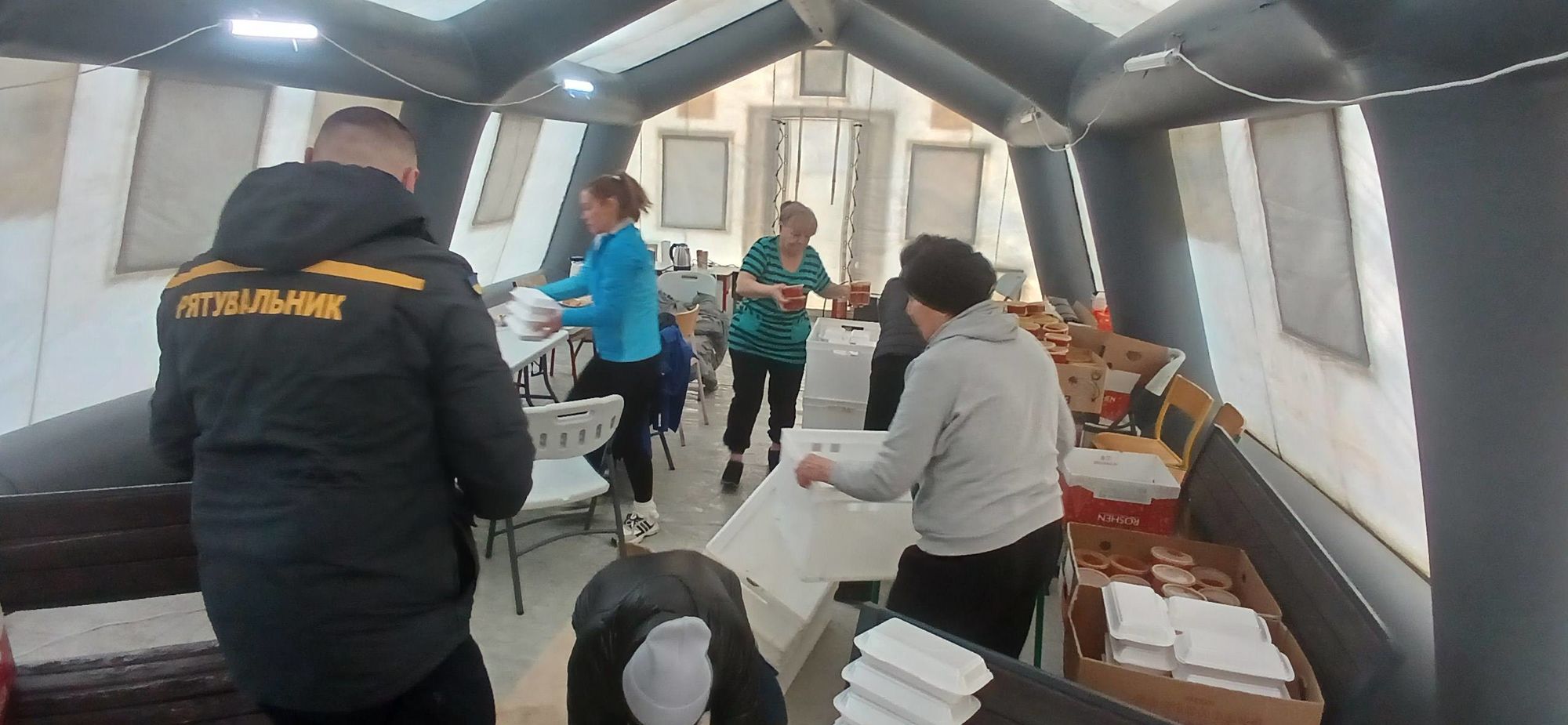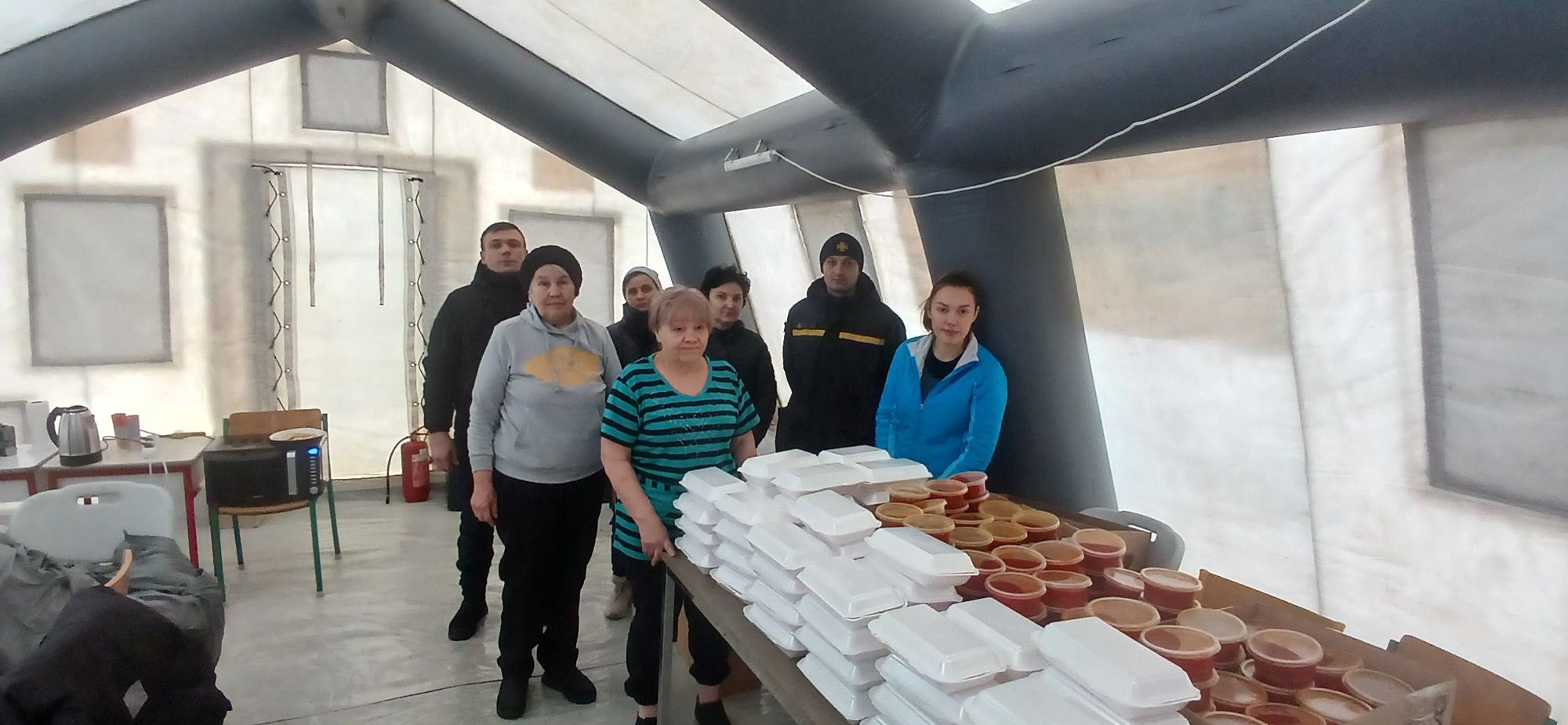 14 січня Патріарша фундація «Мудра справа» доставила гарячі обіди для мешканців модульного містечка «Ластівка». У зв’язку з відсутністю електроенергії люди залишилися не лише без світла, а й без опалення, оскільки системи обігріву в таких помешканнях є електричними.